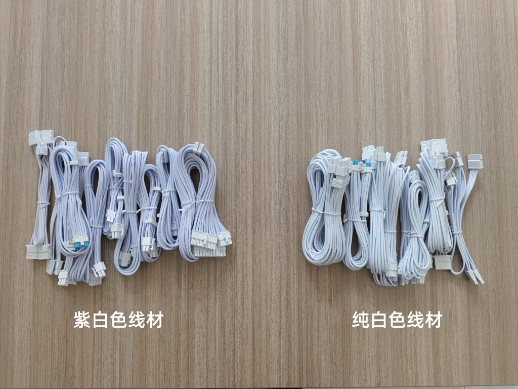 在发布 SX Platinum 系列电源后,我们收到了用户关于白色线材颜色略显“紫色”的反馈。经过进一步检验,目前的白色线材确实带有明显的紫色色调,对于追求装机效果美观的用户来说,这可能不是理想的视觉效果。